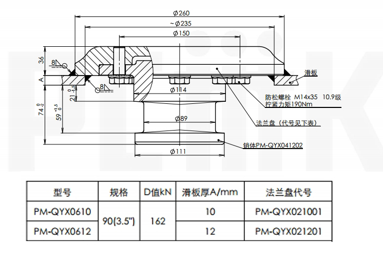 3、8XM14*35為一次性防松螺栓(不得二次使用),性能等級10.9,擰緊為矩190±10Nm.
